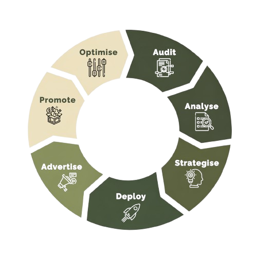 Whether you are launching, restructuring an underperforming account, or accelerating growth, we act as your outsourced Amazon partner – bringing senior expertise without the cost of a full in-house team.